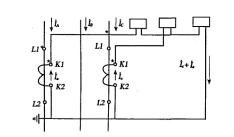 The two-phase incomplete star connection is shown in the figure. During normal operation and three-phase short circuit, the current passing through the neutral line is I0=Ia+Ic=- Ib, reflecting the phase current of the phase without the current transformer connected. If two transformers are connected to phases A and C, and there is a short circuit in phase AC, both relays will activate; When there is a short circuit in phase AB or BC, only one relay operates. In a directly grounded neutral system, when a grounding fault occurs in phase B, the protection device does not operate.